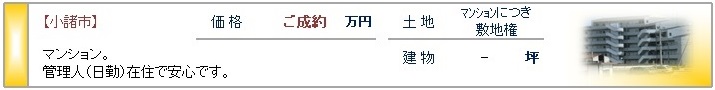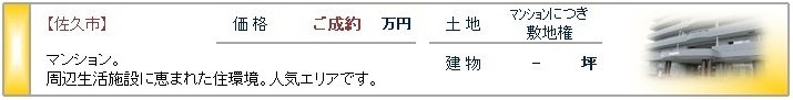 | 過去にお問合せ頂いた方へ 報告として、[ご成約]物件も 掲載してます。 ご成約物件 の詳細情報は伏せて表示。 |